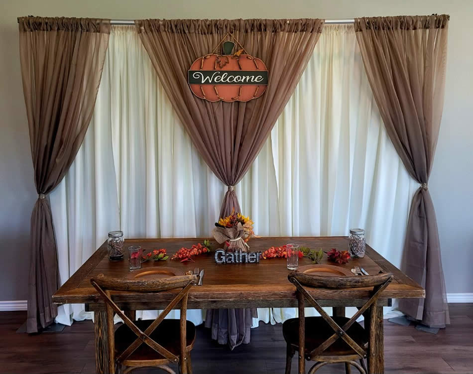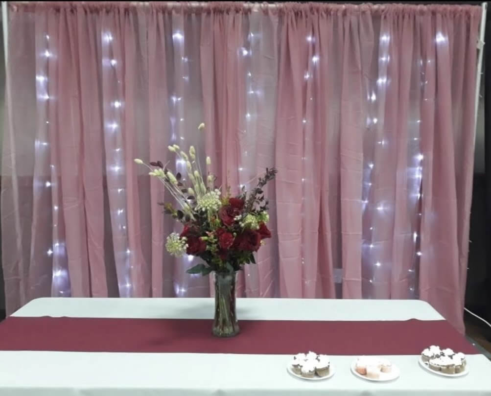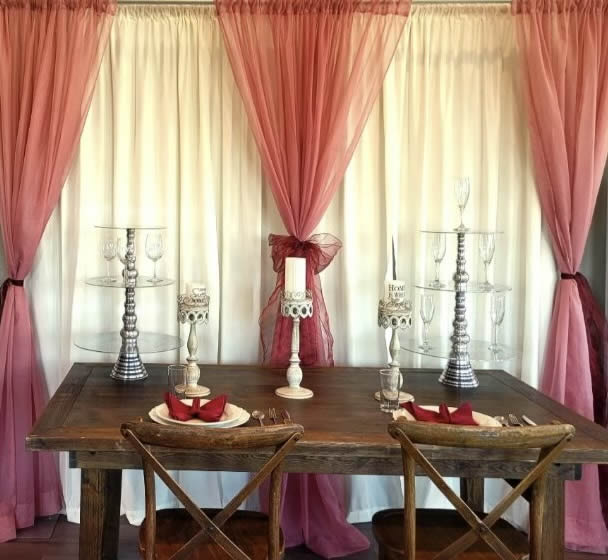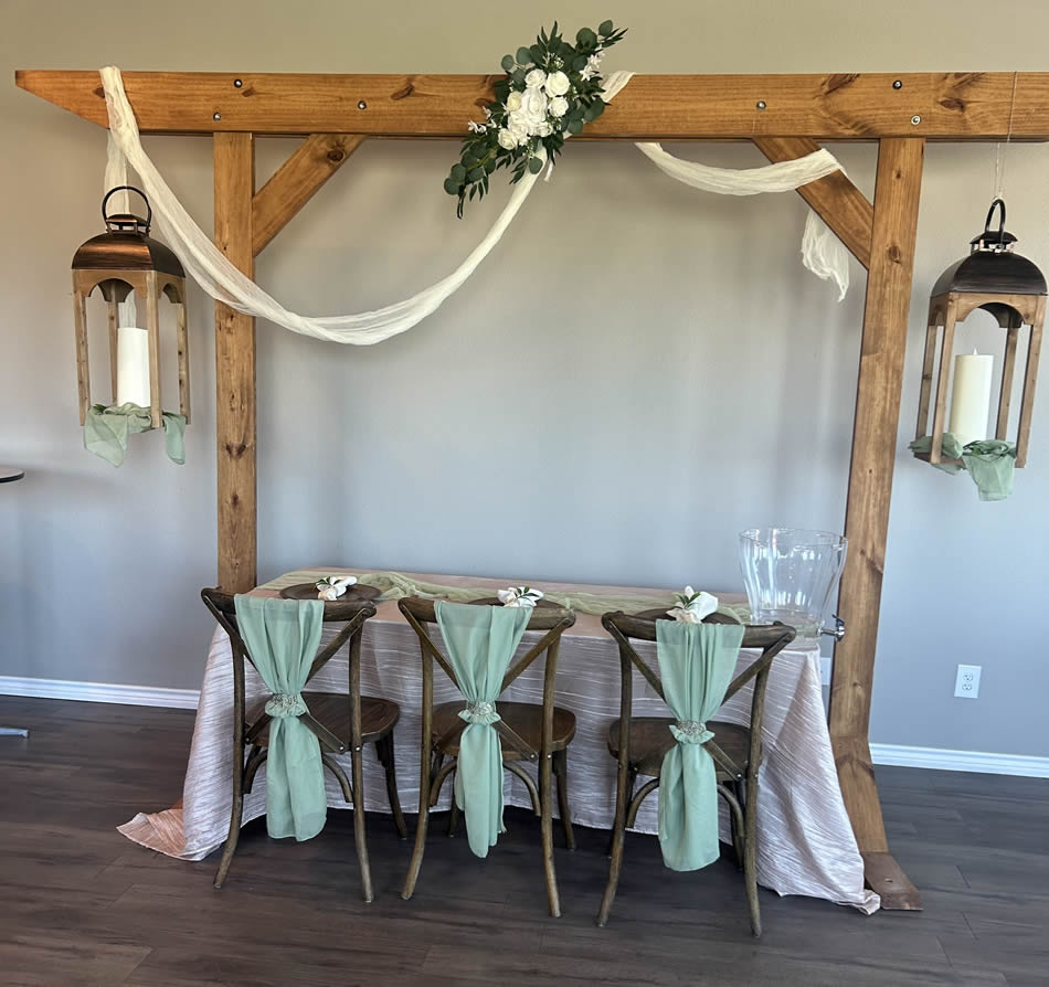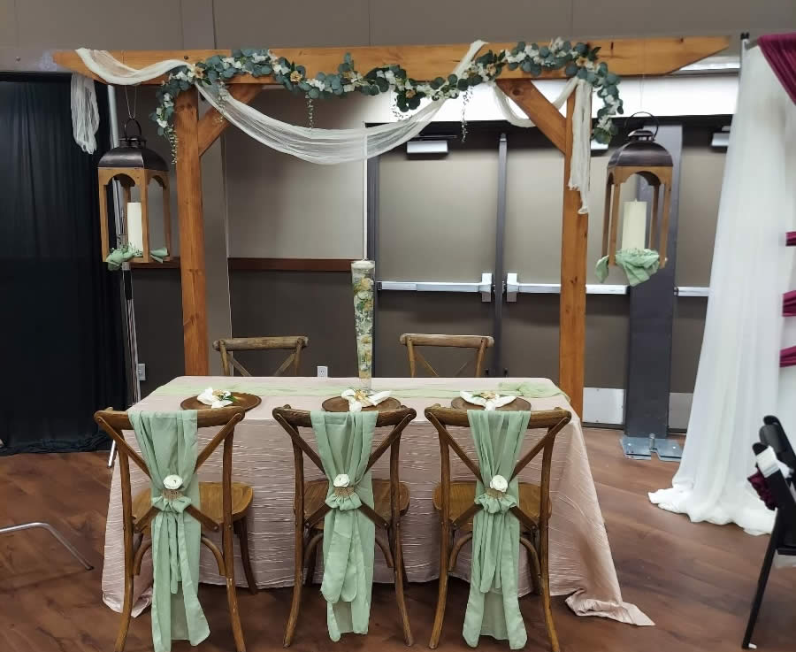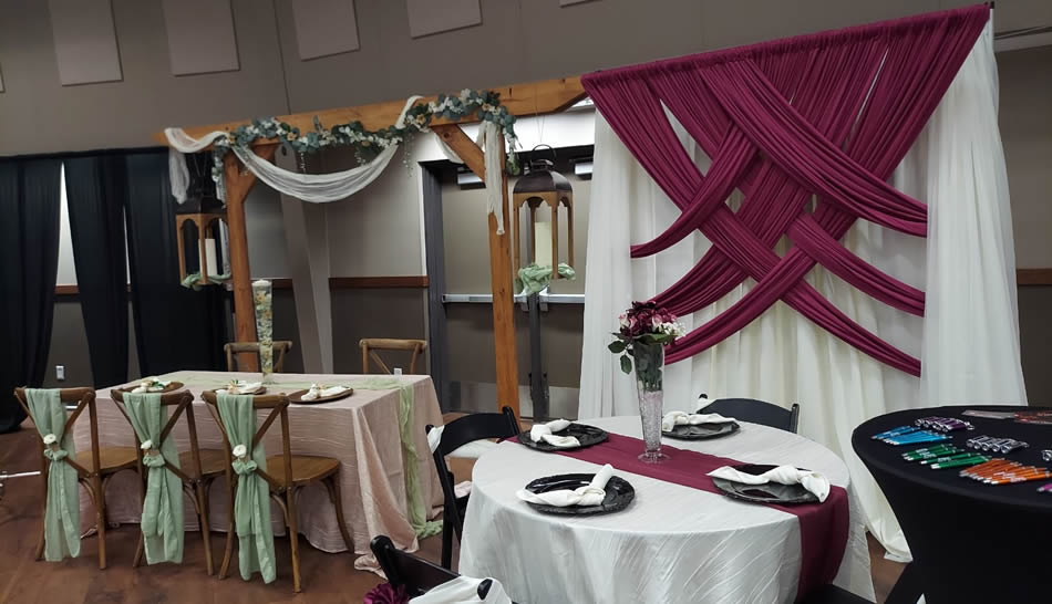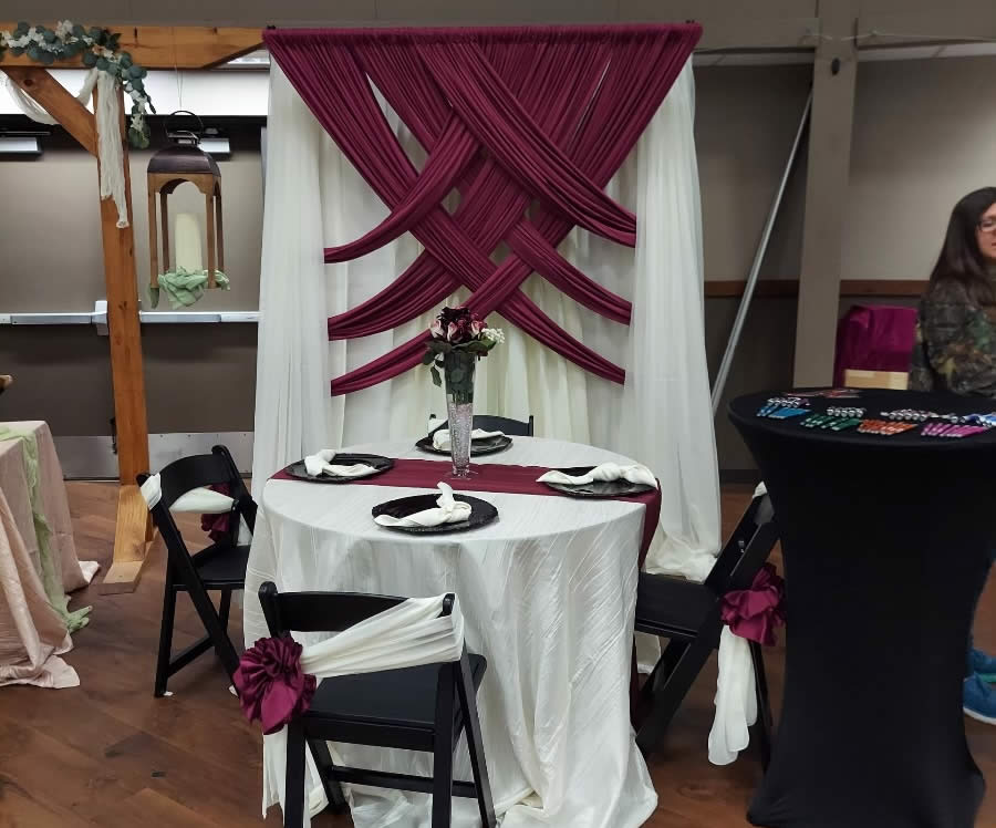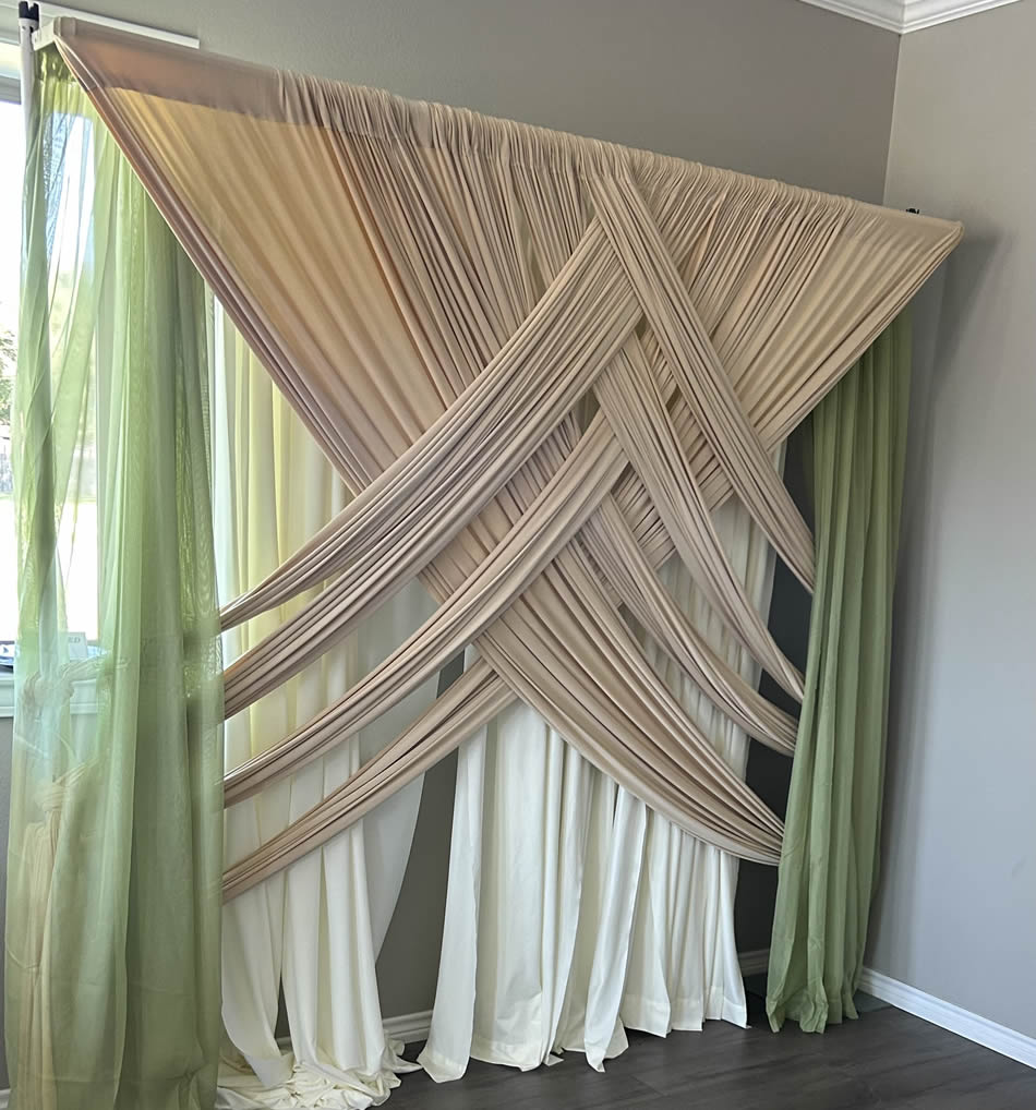 Description: Back Drops and Arches for Weddings, Special Events & Tradeshows.
