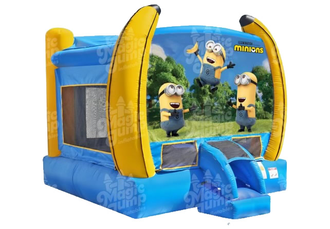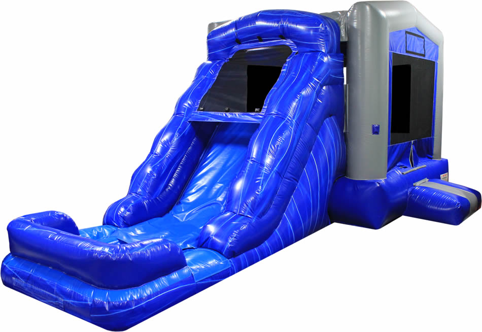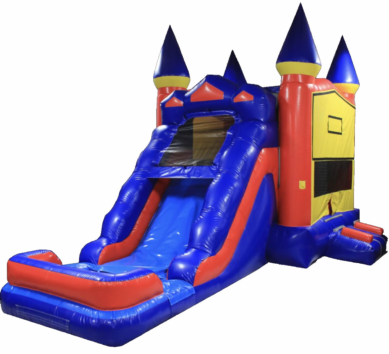 Description: Height: 12'5" Length: 27' Width:15' Twice the Fun! Wet or Dry Slide and Bounce House. This Castle Combo may be used all year long, wet or dry