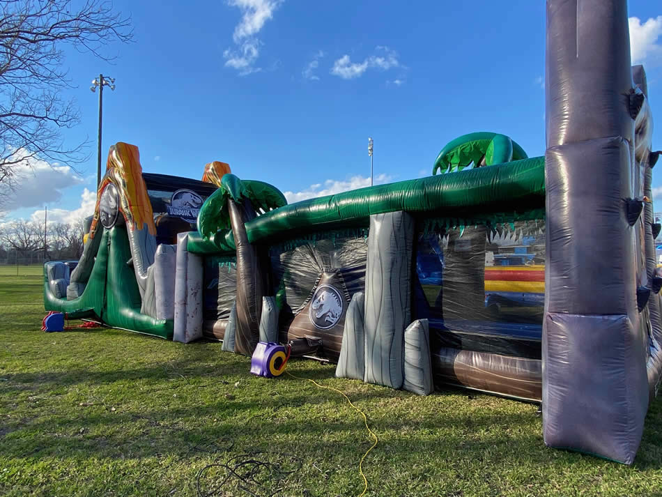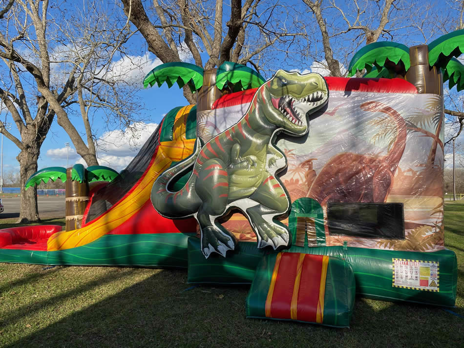 Description: Dinosaur inflatable bounce house - 30'L x 13'W x 14'H