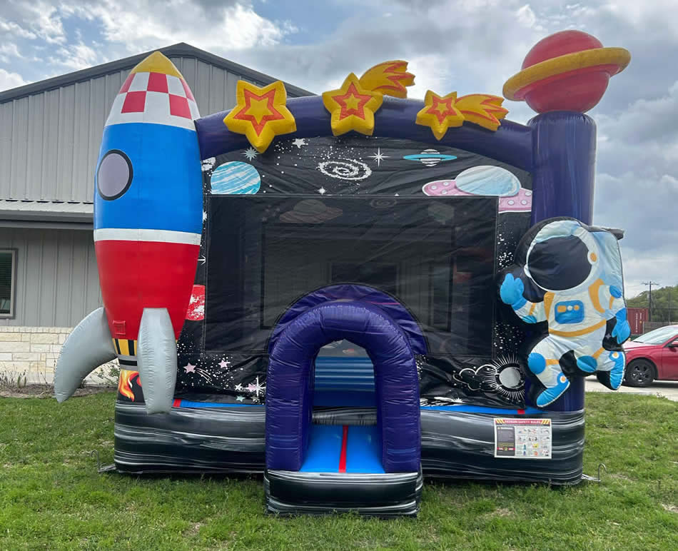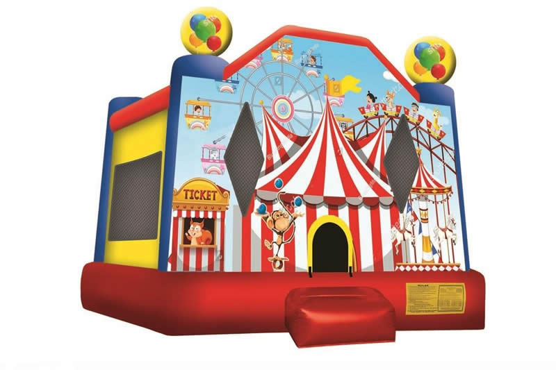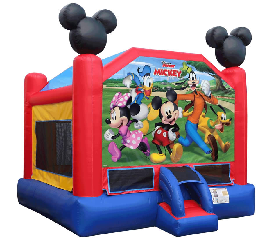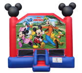 Description: Height: 13' Width: 13' Length: 13' The bounce house is the perfect way to combine fun and healthy activity, and will add value to any Party Rental With a variety of colors, shapes and themes, our moonwalks offer kids of all ages exciting aerobic activity. This jumper has 360-degree mesh windows, so parents and spectators can have a clear view of all the fun. Our moonwalks are made safe and secure with lite n strong™, fire-resistant vinyl making it safer, portable and more durable. Comes with blower, tie down stakes, etc.